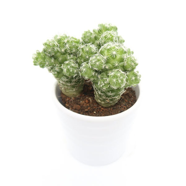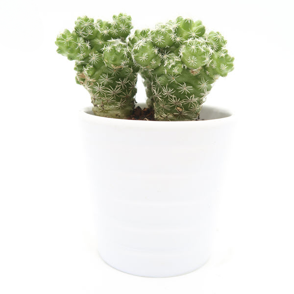 Cây có thân hình trụ nhỏ, mọng nước, với nhiều cây con mọc quây quanh thân mẹ tạo thành bụi tròn rất đẹp mắt. Toàn thân phủ lớp gai trắng mảnh như sợi tơ nhện, tạo nên vẻ ngoài độc đáo và tinh khiết.